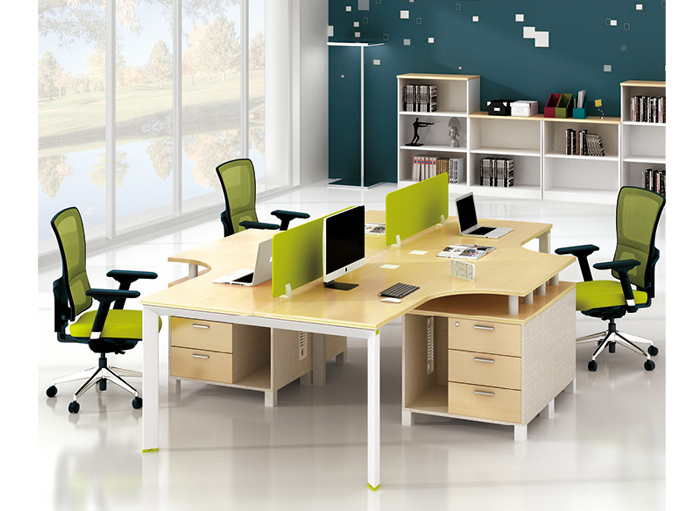 美耐家具 員工辦公桌4人位職員卡位組合/時(shí)尚簡(jiǎn)約現(xiàn)代鋼架4人電腦桌L型四人